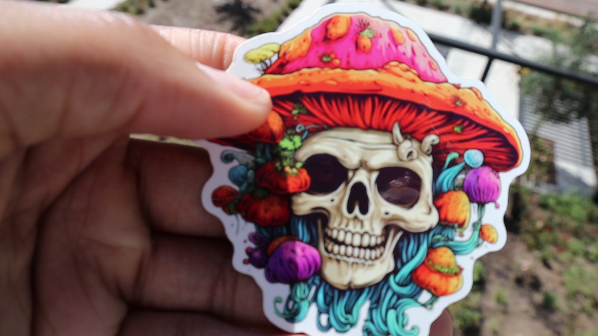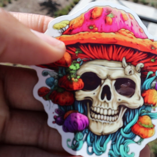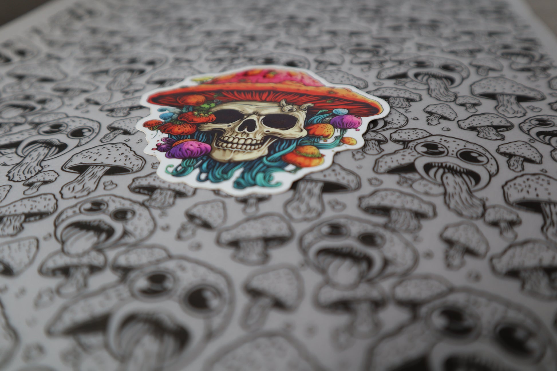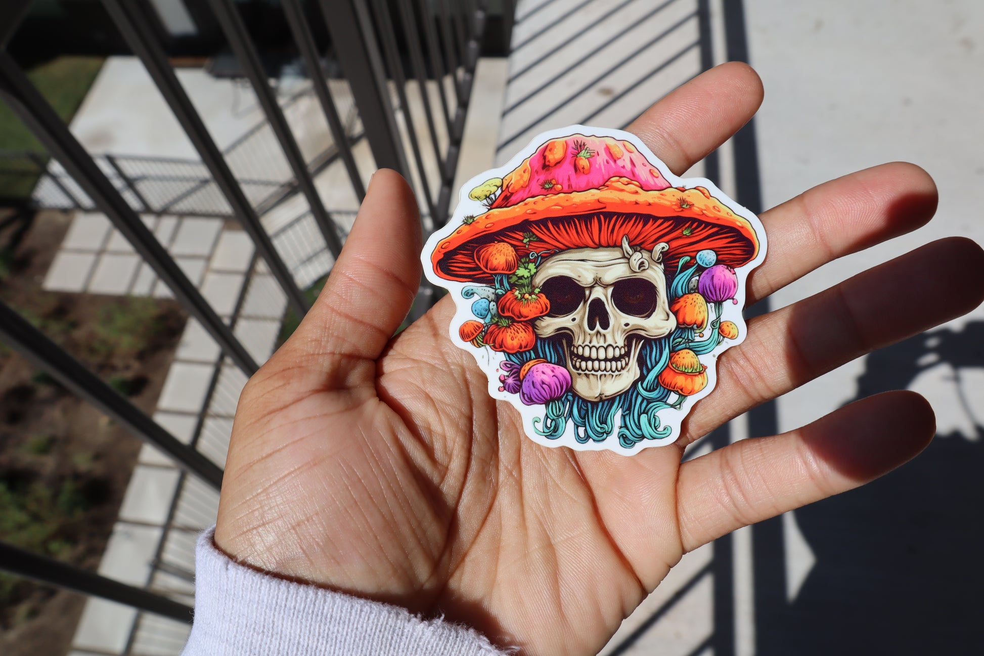 Día de Muertos Shroomlins are here to spread joy and honor lost loved ones in a wonderful way this season. A spirited sticker perfect for music and art aficionados celebrating life and death.